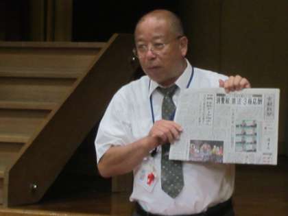 後期始業式の様子です。新聞記事をもとに,『選挙』のお話をしました。