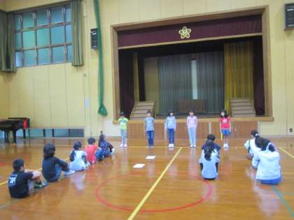 始業式後,1・2年生が『後期に頑張ってみたいこと』のお話をしてくれました。