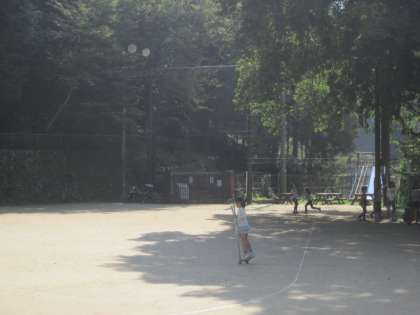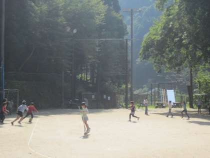 お腹がいっぱいになりました。外遊びをしています。