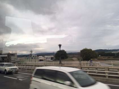 桂川サービスエリアで、最後のトイレ休憩をしました。4時半現在、京都南インターを降り、国道を北上中です。