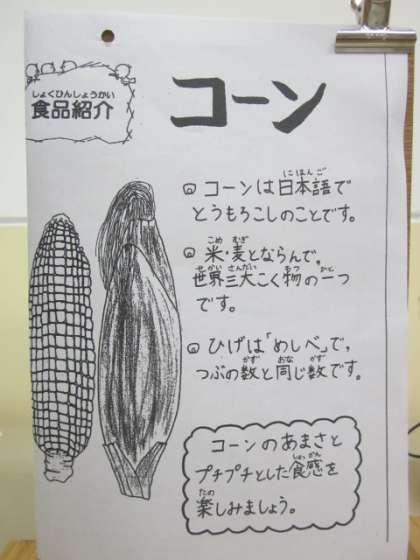 (コーンも児童に人気の食材です。)