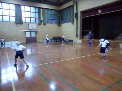 高学年はクラブ活動です。バドミントンをしています。シャトルを遠くに飛ばすのは意外に難しいですね・・・。