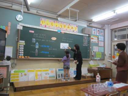 同じコップで比べると…,どちらのペットボトルにたくさん水が入るか,わかりました。