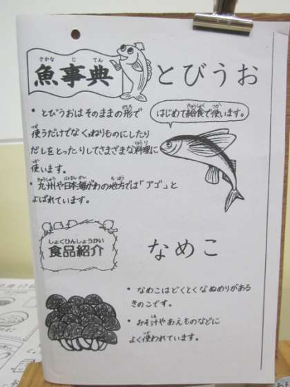 今日の給食に,『とびうお』がありました。