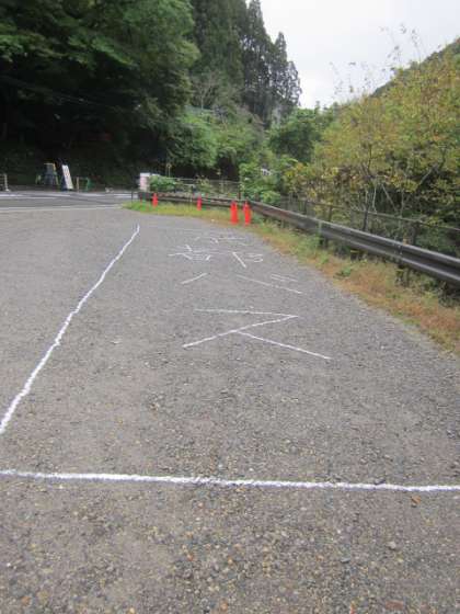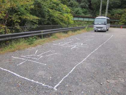 選挙当日の『バス待機場所』を,白線で書きました。