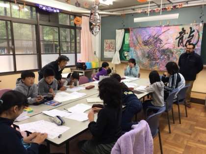 土曜学習の様子を,ルイス先生に見ていただきました。