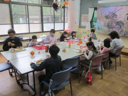 (低学年児童にハロウィンの雰囲気を楽しんでもらいました。)