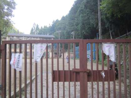 風雨で標識がビリビリに…。修理に取り掛かります。