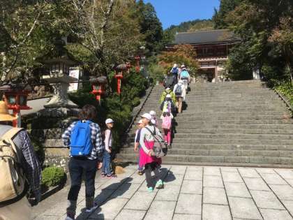 ハイキングコース途中は荒木先生の植物講座もありました。そして、鞍馬寺の山門に着きました。