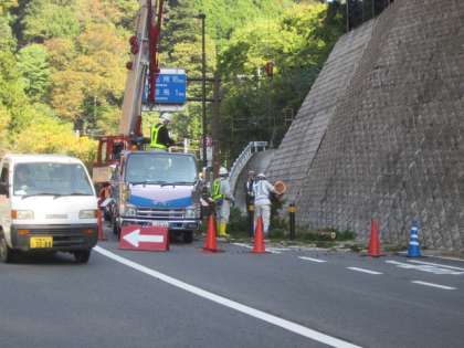 作業中は『片側交互通行』です。作業員の指示に従ってください。