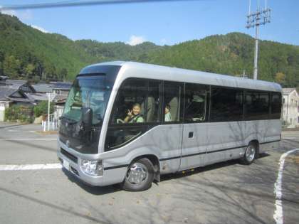 べにや様・ひろ文様のマイクロバスで,学校まで行きました。