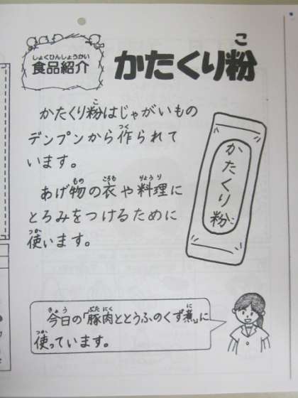 どれくらいの小学生が『片栗粉(かたくりこ)』を知っているでしょうか,興味深いですね。