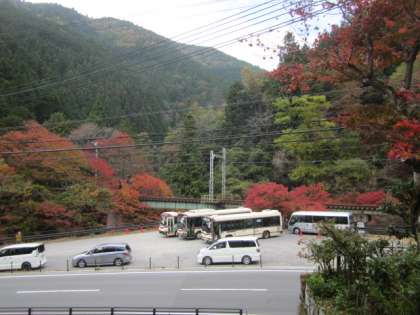 紅葉見物客が多いです。用務員さんはずっと門掃きです。