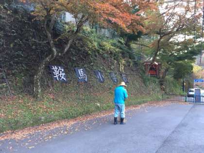 今朝も“門掃き”が始まっています。大量の落ち葉です。