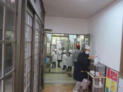 みんなで準備します。消毒も忘れません。