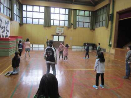 朝遊び,まずはドッジビーでした。楽しそうですね。