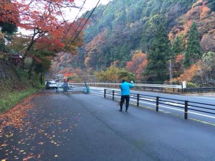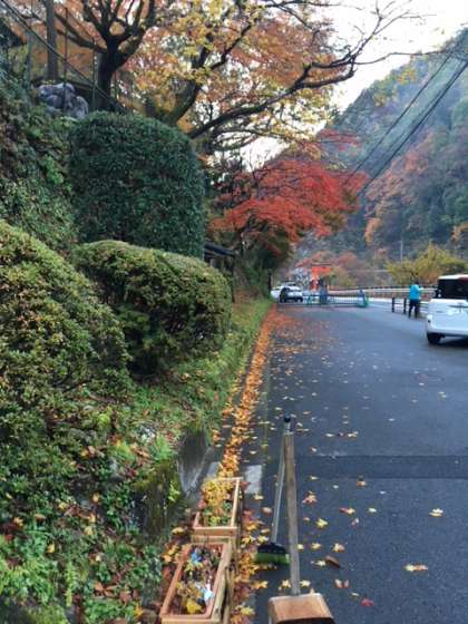 朝の門掃き,落ち葉が地面にこびりついています。