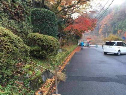 出勤すると,用務員さんが地面にこびりついた落ち葉を掃いていました。なかなか取れないようです。