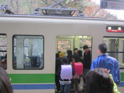 中学生も同じ電車です。
