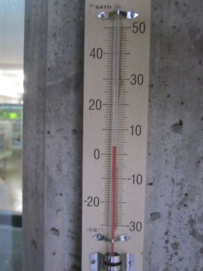 今朝の気温は3度です。小雨が降り,寒い朝です。