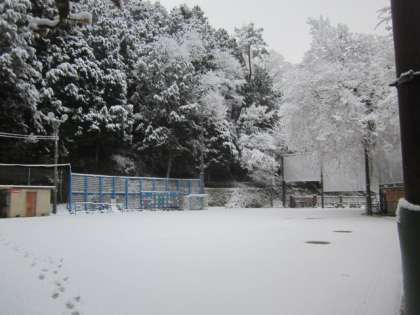 運動場は,一面の雪でした。銀世界ですね。
