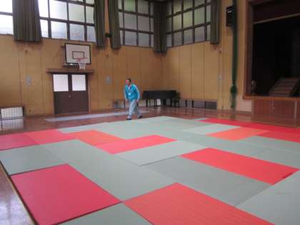 用務員さんが,見る見る72枚の畳を出してくださいました。