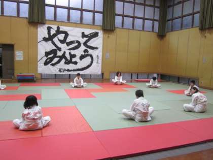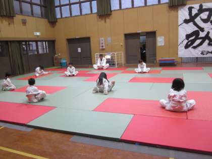今年の柔道教室が始まりました。寒い中,ジェットヒーター2台を稼働させています。柔軟体操をして,さあ,稽古!
