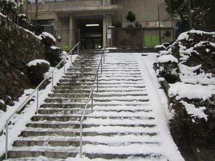 教頭先生と管理用務員さんが,懸命の除雪作業です。