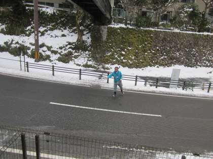 石段の氷は,少しずつ融けてきました。