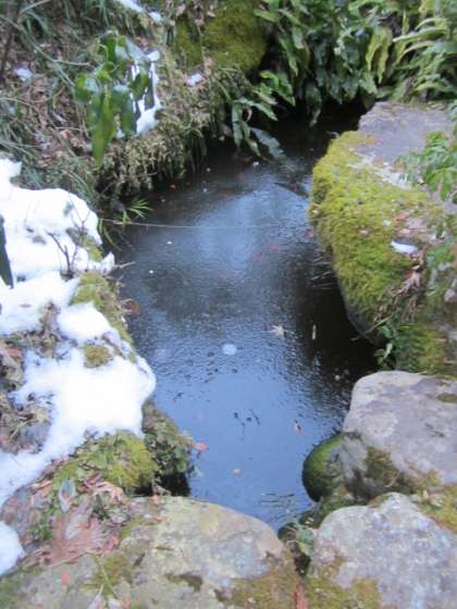 マイナス5〜6度です。池も凍っています。