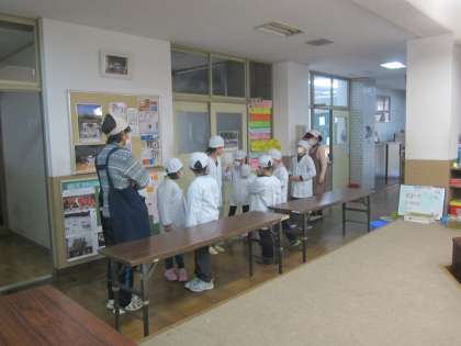 4時間目が終わりました。今日はみんなで給食をいただきます。