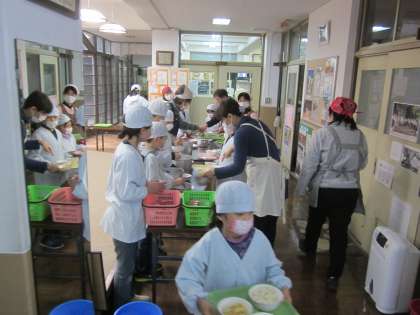 みんなのトレーを持って,運ぶ人・配る人に分かれました。
