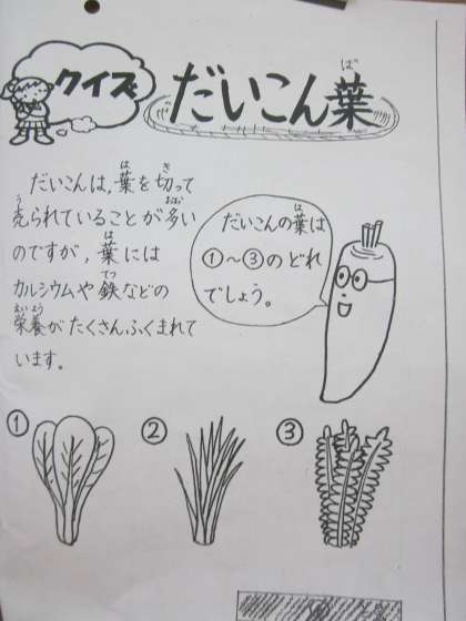 今日の給食には【大根葉】が入っています。