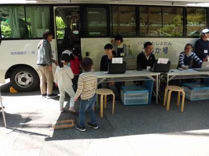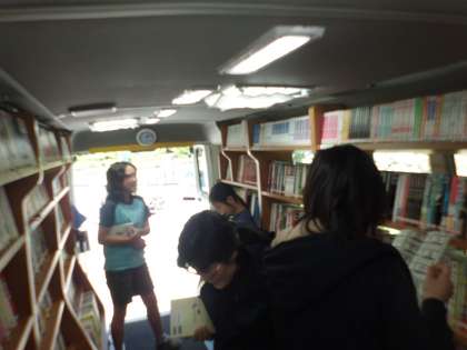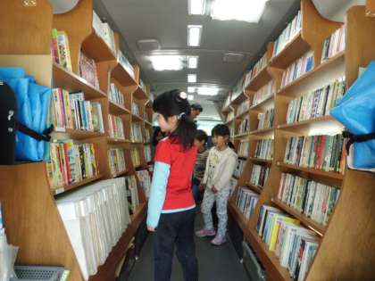 今日は,こじか文庫が来てくれる日です。子ども達も先生たちもたくさんの本の中からお気に入りを探しています。