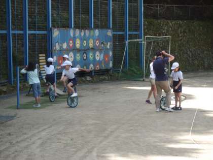 一輪車やサッカーで元気いっぱい遊んでいます。