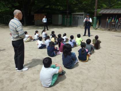 昨日は,不審者が学校に侵入したという想定で,防犯訓練をしました。みんな真剣に,そしてすばやく運動場に避難することができ,来ていただいた鞍馬駐在所の方からも褒めていただきました。「いかのおすし」の合言葉を覚えておきましょう。