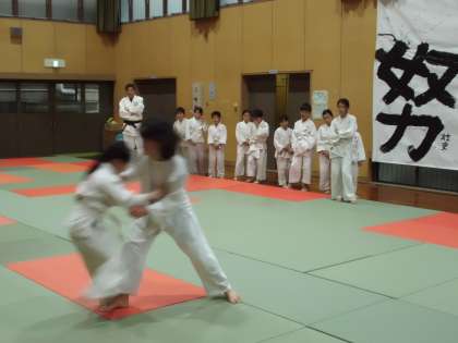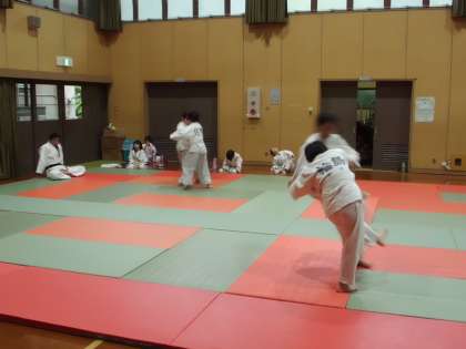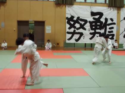 今日は柔道教室がありました。みんな一生懸命がんばり,いいお稽古ができました。体育館に掲示している「やってみよう」「努 勇 信」がみんなを見守っています。