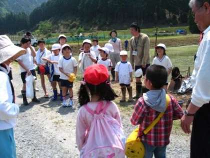 静原小学校と田植えの交流をしました。楽しかったよ!
