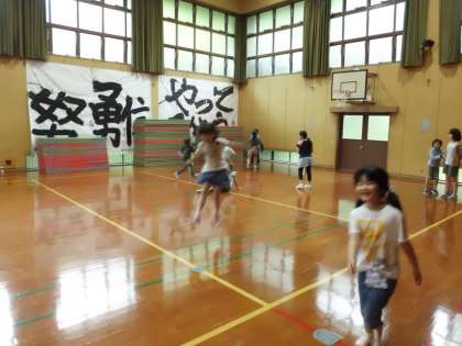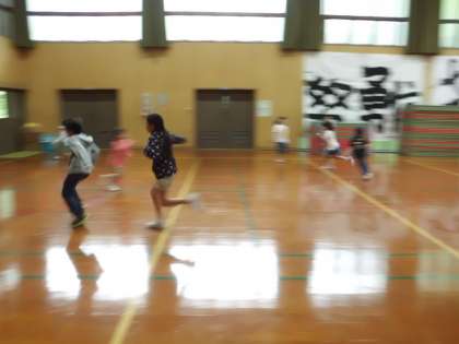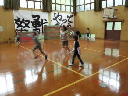 4年生がいないので今日は15人での鬼ごっこです。5年生が低学年に優しく声をかけてくれています。
