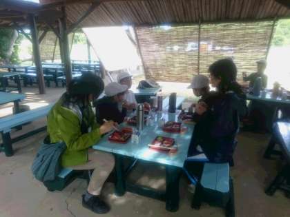 ラジオ体操をしてから、朝食を食べました。牛乳の味が給食と違いました。