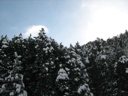 鞍馬小学校の自慢のムクノ木も雪で真っ白になりました。