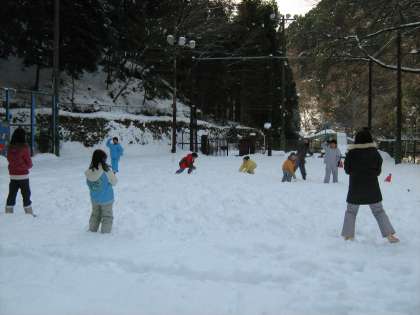 冬の雪の積もった1月は,雪合戦を行いました。6年生のリーダーが上手にみんなをまとめています。佛教大学の学生もいっしょなので,子どもたちは,喜んで雪合戦を楽しみました。冬の雪遊びを通して,鞍馬っ子の体力づくりができることを願っています。