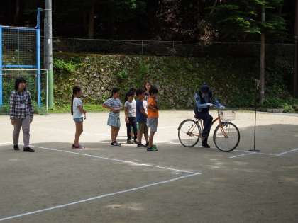 今日の5時間目は,交通安全教室です。自転車の安全な乗り方や,交通ルールについて学習しました。下鴨警察署から警察官の方に来ていただき,自分たちの命を守るための大切なお話を聞きました。低・高学年に分かれて,実際に自転車に乗ったり押したりしながら,交通ルールに従って進む練習をしました。また,ジグザグや遅乗りのコーナーでも挑戦しました。これからも交通ルールを守って安全に通行しましょう。