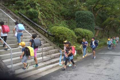 この階段は、明治時代、この場所に鞍馬小学校が建てられたときからあるそうです。子どもたちが階段をのぼっていく姿を見て、100年以上前もこうして先輩方が学校に通っていた姿を想像しました。