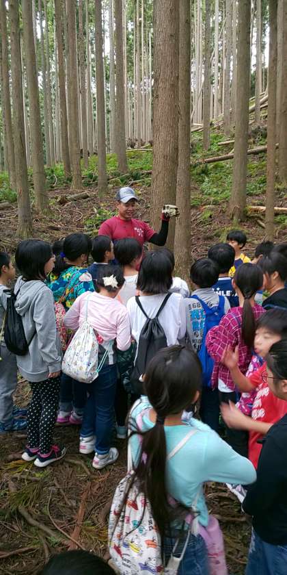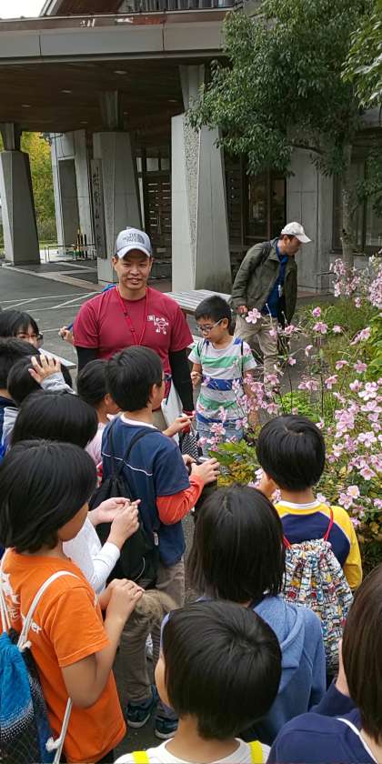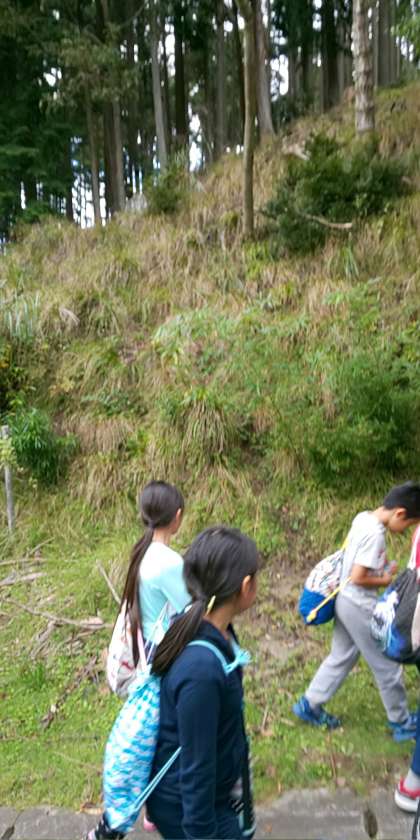 自然観察では、山の中にシカの骨があったり、ケモノ道が見つかったりしました。キブネギクもたくさんいました。