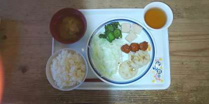 今日の朝食は、ご飯かパン選べました。それに合わせて、みそ汁かコーンスープかも選びました。