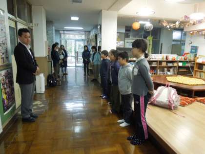 鞍馬小学校に帰ってきました。保護者の方や教職員に迎えられ,最後に鞍馬小学校での解散式をしました。この2泊3日でたくさんのことを学びました。それをこれからの生活に生かしていってほしいと思います。
