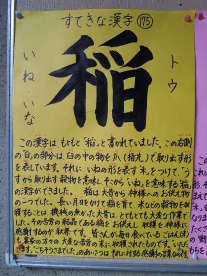 すてきな漢字175・176を掲示しました。「実りの秋」に因んで漢字を選びました。