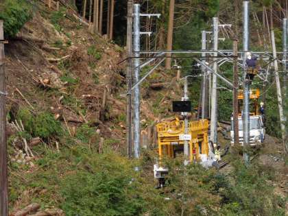 今日も貴船口駅の北側ではチェーンソーの音が響いていました。復旧に向けて懸命の作業が続いています。