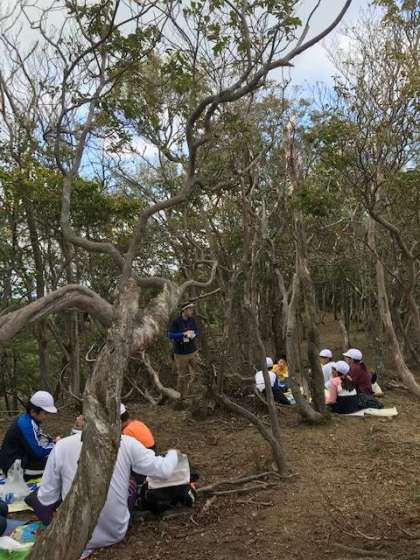 頂上でみんなでお弁当を食べました。頑張った後のおにぎりは最高です。